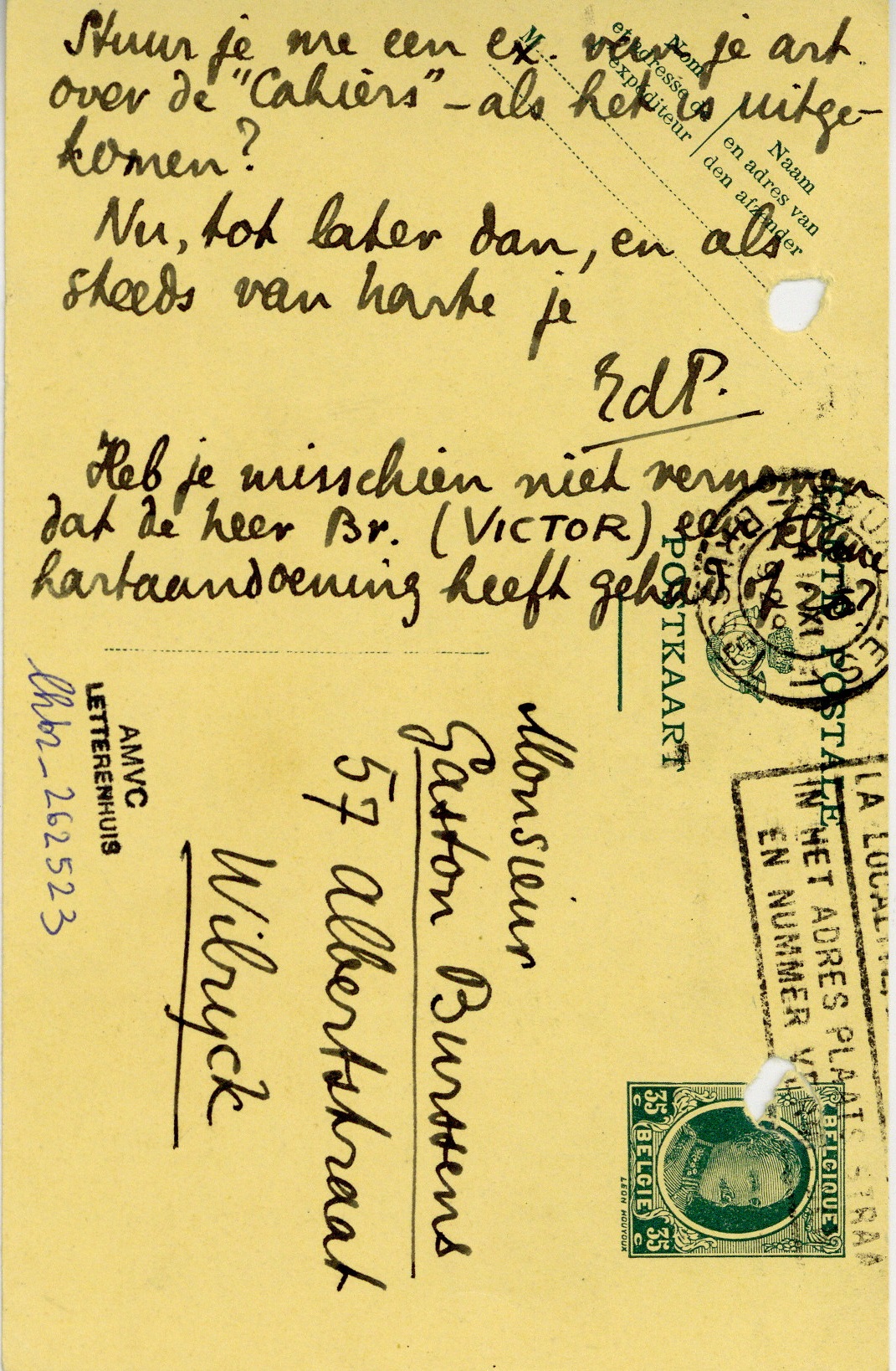 Stuur je me een ex. van je art. over de ‘Cahiers’ - als het is uitgekomen?