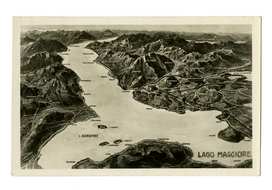 759Prentbriefkaart: getekend vergezicht over het Lago Maggiore.
