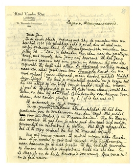 In de eerste plaats: ontvang met Aty de wenschen voor een heerlijk 1930 (de gelukkige echt is er al, dus al wat men verder verlangen kan), de allerwelgemeendste wenschen van jullie Ed. - Dan, de bedanken van idem voor den gezelligen brief, met vervolg, dien Jany mij doorzond. Ik heb Jany trouwens zooeven nog even gezien in Ascona: hij was zeer opgewekt. Hij heeft niet alleen De Afspraak volledig vertaald, maar een essai geschreven over Sirenische Kunst en een soort verhaal (genre Afspraak, maar korter), getiteld Kristal tegen Spiegel. Hij laat je vriendelijk groeten en je zeggen dat hij nog altijd op een brief van je wacht, zulk een waarin je over de Spijkers791, die je in ‘De Gids’ wou slaan, zoudt handelen, en dien hij aan den Prof. Colenbrander792 zou kunnen doorsturen, dus zonder gijntjes a.j.b. (of is het met ei?)