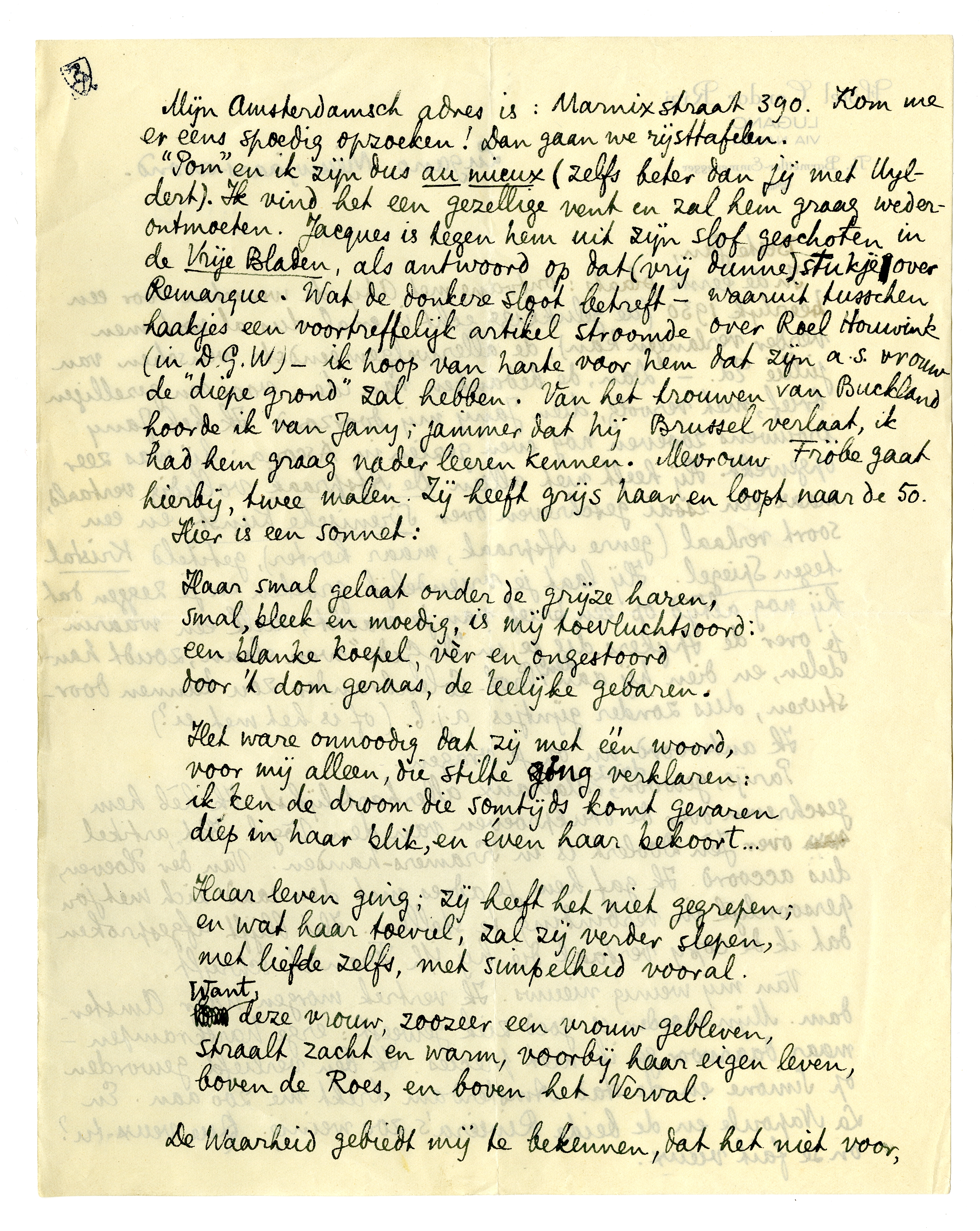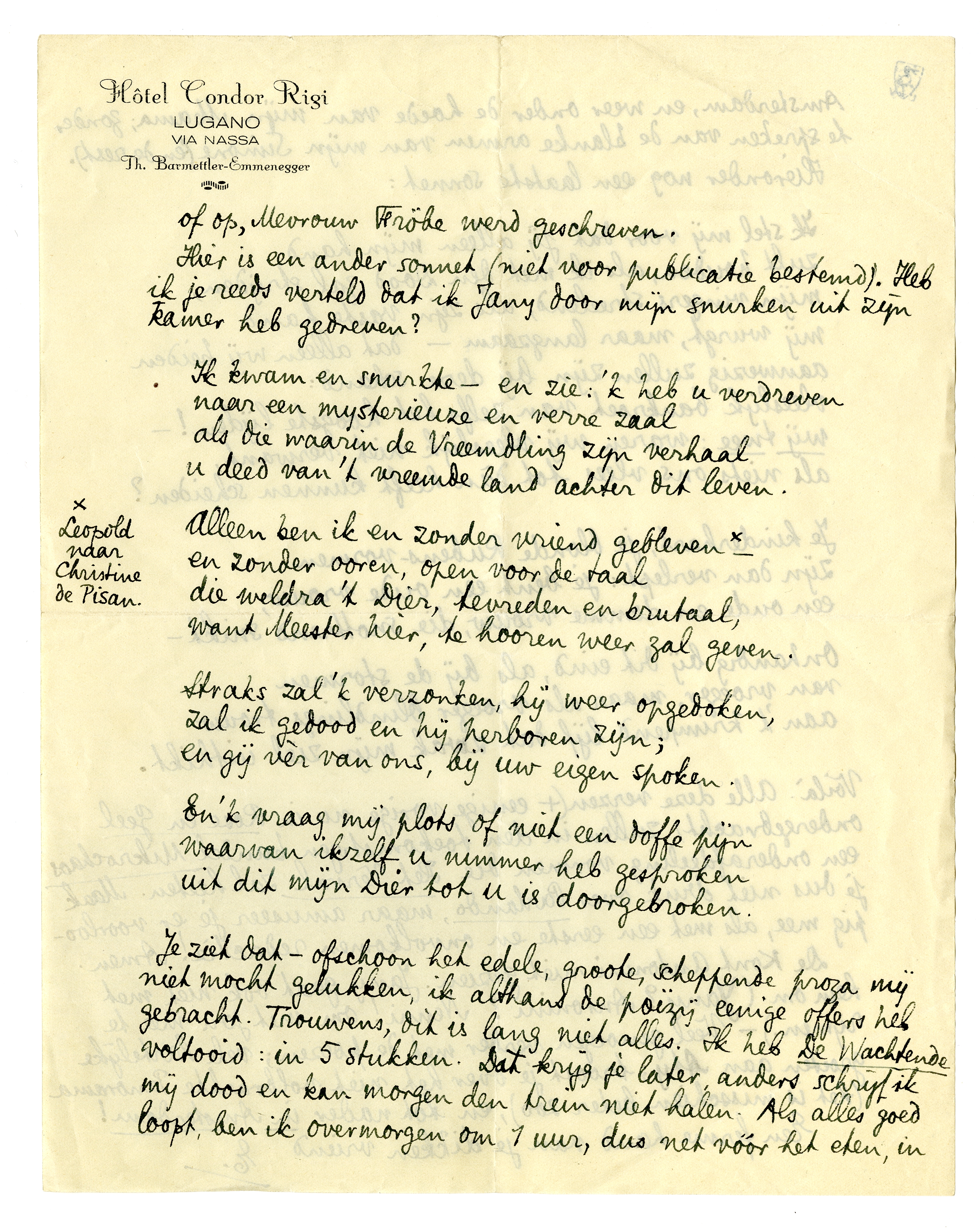 Hier is een ander sonnet799 (niet voor publicatie bestemd). Heb ik je reeds verteld dat ik Jany door mijn snurken uit zijn kamer heb gedreven?