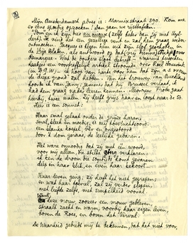 Je ziet dat - ofschoon het edele, groote, scheppende proza mij niet mocht gelukken, ik althans de poëzij eenige offers heb gebracht. Trouwens, dit is lang niet alles. Ik heb De Wachtende801 voltooid: in 5 stukken. Dat krijg je later, anders schrijf ik mij dood en kan morgen den trein niet halen. Als alles goed loopt, ben ik overmorgen om 1 uur, dus net vóór het eten, in Amsterdam, en weer onder de hoede van mijn Mama; zonder te spreken van de blanke armen van mijn Simone (en de rest).