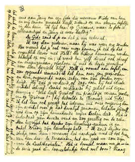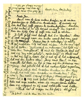 Kan je, als je toch tusschen Arnhem en Den Haag zwerft, ons niet even opzoeken in Amsterdam? Mijn adres is dan wschl. (vanaf 15 dezer) Vossiusstraat 45; maar het is nog niet geheel zeker. - Het gaat nu veel beter met mijn moeder, maar die vomeer-toeren hebben haar erg uitgeput en zij moet volstrèkte rust hebben.