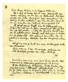 Ik schreef vanmorgen een lange brief aan Sander in antwoord op den zijne. Hij zal hem je wel laten lezen, zoodat ik de dingen niet 2× te schrijven heb. Met mijn moeder is het vrijwel hetzelfde. Ik zie hier Willink, Blijstra en Kelk, daarna Kelk, Blijstra en Willink. Van ‘Pom’ geen teeken van leven; misschien zit hij in Parijs. Anders, in de Vliegende Hollander.