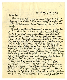Ik ontving je vele missiven, maar meende je 2 of 3× geantwoord te hebben! Vanavond schrijf ik nader. Dit alleen hierover, en in groote haast (wij zijn juist verhuisd).
