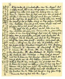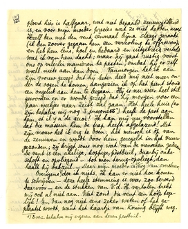 Overigens* doe ik niets. Ik kan er niet toe komen te schrijven - deze heele stemming is weer zoo beroerd daarvoor - en de stukken van V.d.H. vertalen trekt mij ook al niet aan. Wat zond die vent een hóóp tegelijk! En dan nog niet eens zeker weten of het geplaatst wordt, want het kaartje van Koning blijft weg.