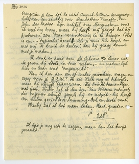 Kan ik hier den een of ander misschien vragen om copy voor je D.G.W.? Ik zie Kelk nog al dikwijls, maar hij schrijft spaarzaam. Hij drinkt daarentegen met ijver. Verder heb ik den heer Van Wessem ontmoet, die ongeveer schrijft zooals hij er uitziet: hij heeft een halve gezichtsverlamming. Ook een beste vent.