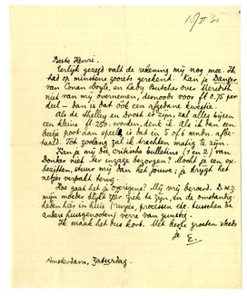 Als de Shelly en Drost er zijn, zal alles bijeen een kleine fl.250. worden, denk ik. Als ik dan een beetje poot-aan speel, is dat in 5 of 6 mndn. afbetaald. Tot zoolang zal ik trachten matig te zijn.