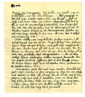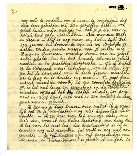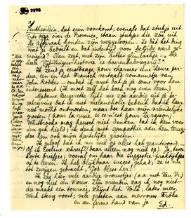 Intusschen gaat het met mijn moeder betrekkelijk goed, maar Simone is zeer nerveus en lag nu een weekje met ischias in bed. Ik schreef Van de Linde953 dat ik hem gaarne nog eens met S. opzoeken wou en denk dat ook zeker te doen vóór we van hier weer weg gaan. - Enfin, Jany, dat is een dubbel velletje misère en heusch, ik heb het nog kort gemaakt.