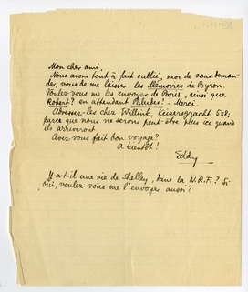 Y-a-t-il une vie de Shelley, dans la N.R.F.? Si oui, voulez-vous me l'envoyer aussi?