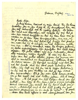 Dat is dat. Van hier geen nieuws. Alles is rustig en als vanouds. We zijn met Weensche dienstmeisjes uit Amsterdam gekomen en een dame voor de huishouding, wier moeder een Balineesche prinses was! Alles blijft dus ook even hybridisch. Simone maakt het veel beter, Gille is geweldig dik en spreekt een beetje Hollandsch tegenwoordig. Met mijn moeder gaat het gelukkig vrij wel; toch denken we er hard over de boel op te doeken en in de stad te wonen. Wat voer jij uit?