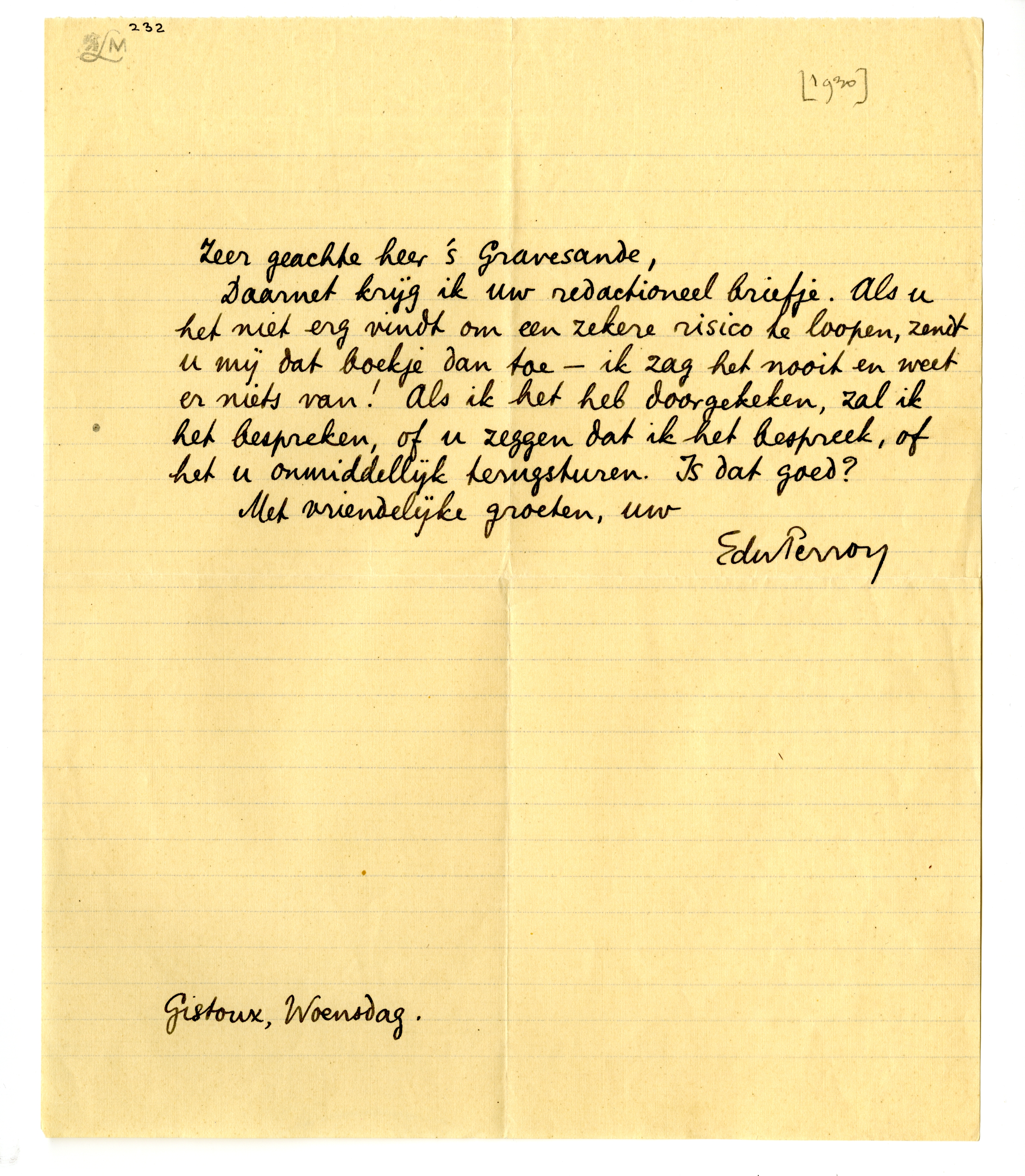 Daarnet krijg ik uw redactioneel briefje. Als u het niet erg vindt om een zekere risico te loopen, zendt u mij dat boekje1024 dan toe - ik zag het nooit en weet er niets van! Als ik het heb doorgekeken, zal ik het bespreken, of u zeggen dat ik het bespreek, of het u onmiddellijk terugsturen. Is dat goed?