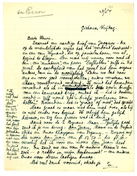 Daarnet een aardige brief van Jacques - die op de vriendelijkste wijze tot het ‘verbond’ toetreedt - en een van Wynand, die op jovialen toon, nu al, begint te klagen. Men moet mij nemen voor wat ik ben: een ‘amateur’, een puur ‘liefhebber’ zelfs in dit geval. De aardigheid van het geval zit hem ergens anders, dan in de mooiïgheid. Laten we dat voor eens en voor goed vooropstellen; anders verstaan we elkaar voortdurend verkeerd. Ik vind het bovendien vervelend als ik in omstandigheden als deze zoo'n briefje van een kameraad krijg, omdat ik - het is doodeenvoudig - zelf nooit zoo'n briefje geschreven zou hebben.* Bovendien: het is ‘graag of niet’, dat spreekt.