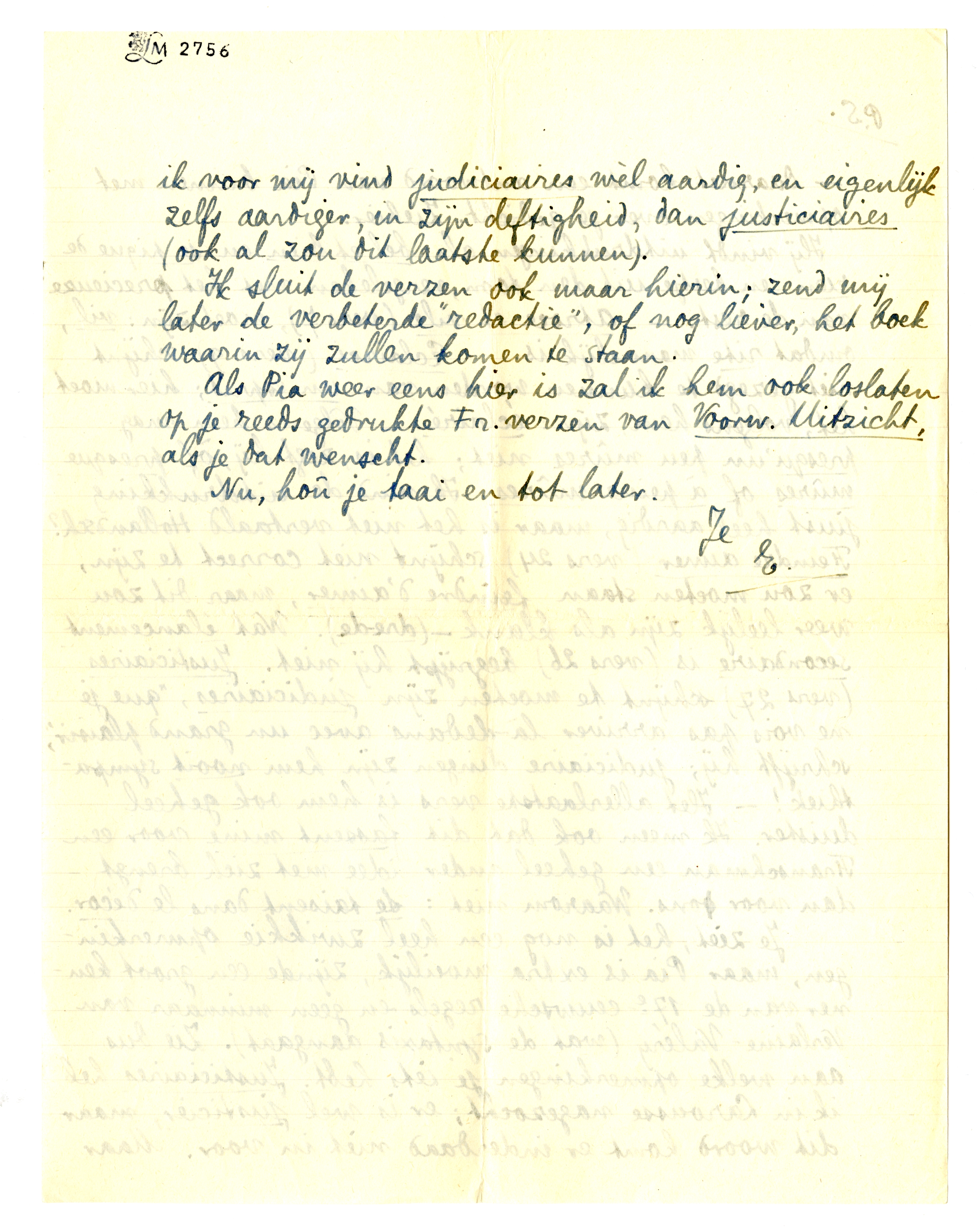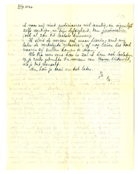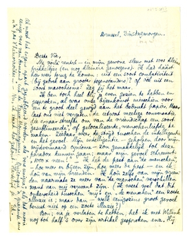 Bon; na je verlaten te hebben, heb ik met Willink nog tot half 3 over zijn artikel1258 gesproken enz. Hij had er mijn naam in gezet; ik heb aan je opmerking over het noemen van Jany gedacht en mijn naam geschrapt. Ik ben een goed vriend, dat blijkt hier weer uit! jouw opinie weegt zwaarder dan mijn ijdelheid!