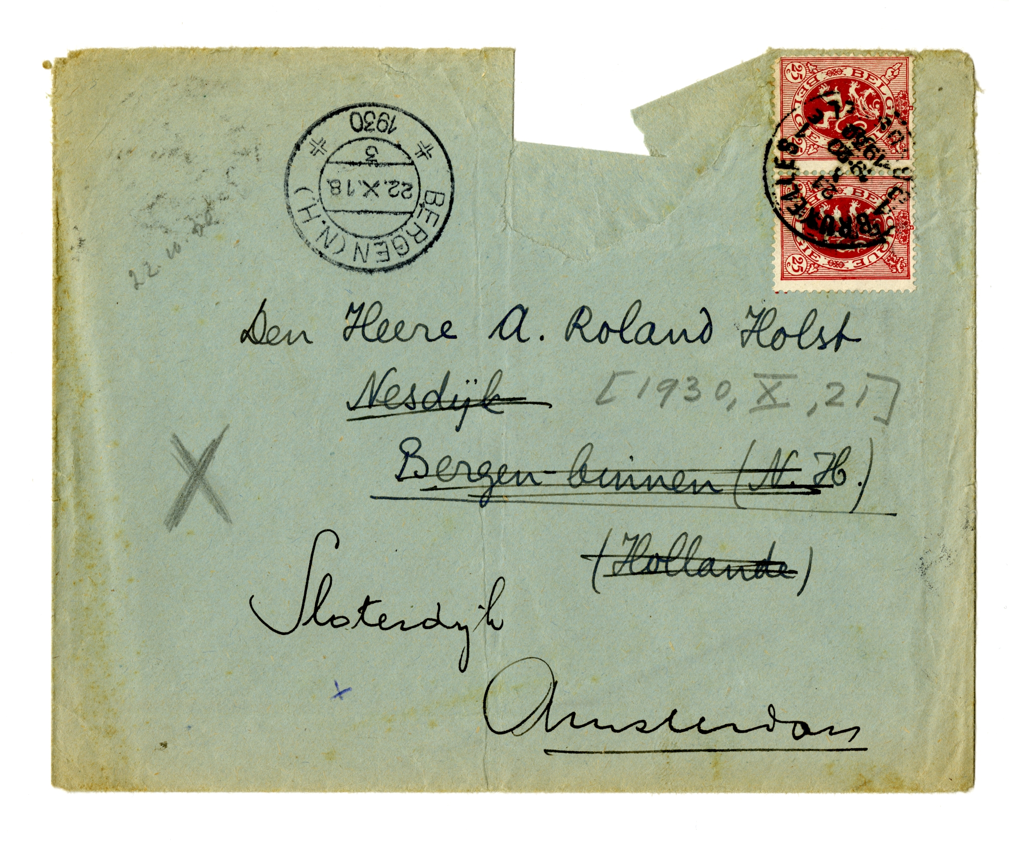Veel dank voor je ietwat Olympische ontevredenheid, dewelke mij aangenaam prikkelde en mij in ieder geval oneindig liever was dan iedere Olympische onbewogenheid. Tegelijk met jouw zending kwam een brief van Kramers, dat ook hij het stuk moeilijk kon opnemen, omdat het zoo lang was, omdat er al zooveel over Slau gestaan had in DGW., en wschl. ook nog om andere redenen. Het zal dus nog wel wat blijven liggen, wat ik bepaald jammer vind. Daarentegen zal ik nu tijd hebben om er nog wat in te veranderen, misschien; waarbij jouw bezwaren mij van groot nut kunnen zijn.