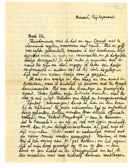 Zondag (overmorgen) kruip ik hier in den trein bij de Malraux'. Ik vrees intusschen dat ze ontzettend bezig gehouden zullen worden door allerlei officieele rotkerels van ‘Nederl.-Frankrijk’ - van de Beverzen tot de Premsela's - en als er ook nog logies verstrekt wordt, kan M., om beleefdheidsredenen al, zich niet altijd vrijmaken. Verder moet er natuurlijk overal met een nieuw comité worden gesoupeerd. Kortom, ik vrees dat ik zéér weinig aan M. zal hebben; en heb eigenlijk al mijn hoop gevestigd op 13 en 14 Dec. - dan komt er een hiaat in de lezingenlijst en zal M. dus misschien wat voor zichzelf kunnen rondloopen in Amsterdam. Ik schrijf je zoodra ik kans zie iets behoorlijks te arrangeeren. Maar laat mij je erbij zeggen dat: als de boel mij èrg verveelt, ik er misschien lang vóór het einde vandoor ga. Met M. meegaan overal, als ongewenschte kornak, staat niet op mijn program.