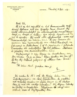 Vrijdagavond is zijn lezing in Amsterdam: over den roman. Ga je er heen? Waar spreken we dan af? Ik ben bij Willink gelogeerd of althans daar ‘bereikbaar’.
