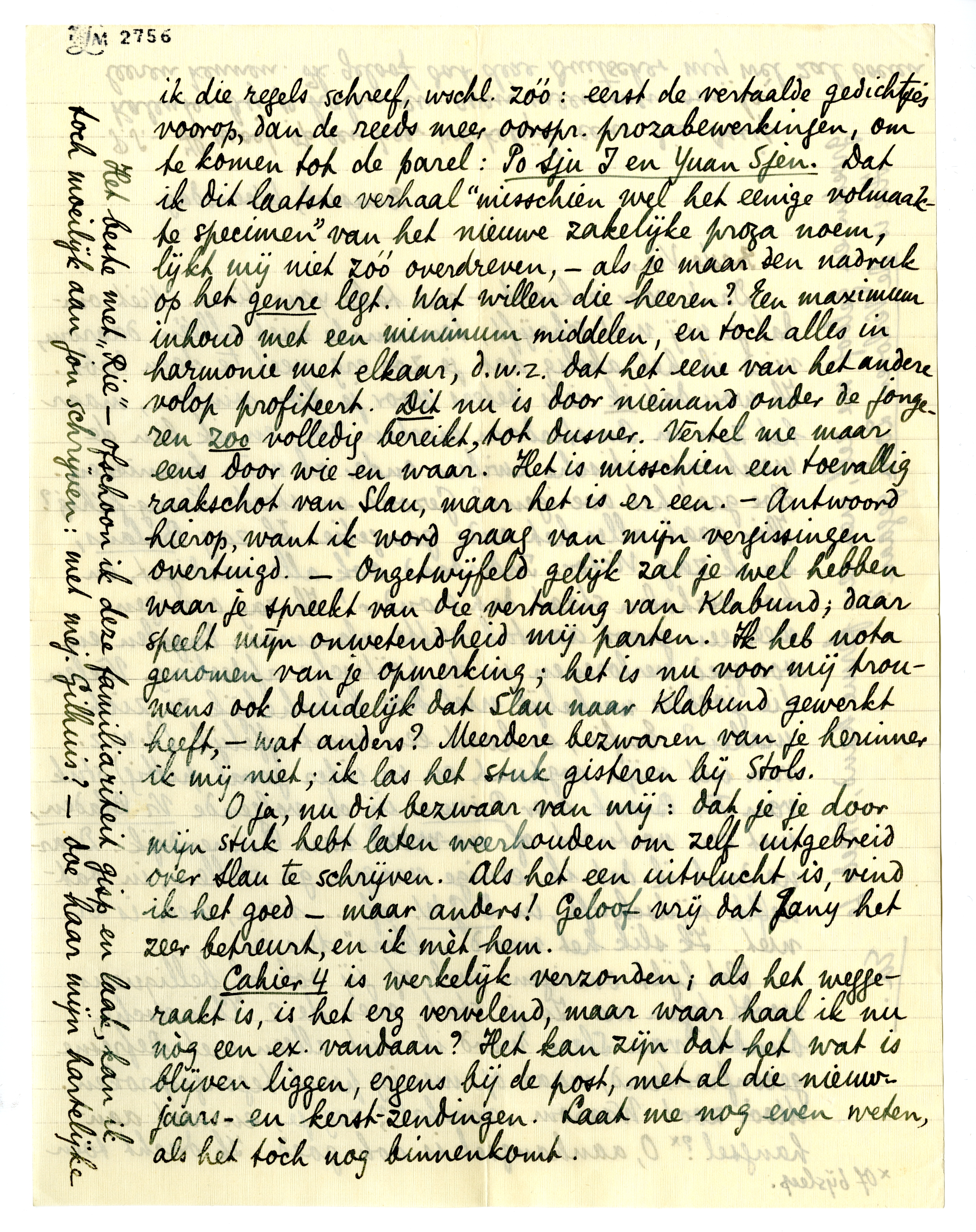 Cahier 4 is werkelijk verzonden; als het weggeraakt is, is het erg vervelend, maar waar haal ik nu nòg een ex. vandaan? Het kan zijn dat het wat is blijven liggen, ergens bij de post, met al die nieuwjaarsen kerst-zendingen. Laat me nog even weten, als het tòch nog binnenkomt.