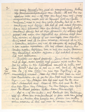Gelijk hiermee schrijf ik aan W.A. Kramers dat hij mij uw eerste antwoord en mijn naschrift terug moet zenden. Het lijkt erg veel op een retraite van mijn kant, maar uw wensch worde geëerbiedigd. Ik ben het volkomen met u eens dat deze historie voor ‘belangstellenden’ niet alleen, maar ook om der wille van de ‘actualiteit’ in een tijdschrift moet komen, maar evenals u vraag ik mij af: waar? U heeft meer relaties en is ‘invloedrijker’ dan ik; wilt ù er niet voor zorgen? Ik ben er dan op gesteld dat de zaak zich net zoo chronologisch voordoet op papier als in werkelijkheid, dus: 1. uw eerste brief; 2. mijn ‘naschrift’; 3. uw tweede brief; 4. mijn antwoord daarop. En dan?.... werkelijk niets meer?