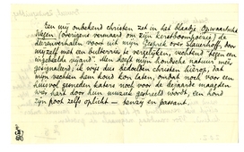 Het is al niet meer noodig: houd de vuiligheid maar weg, d.w.z. zend géén Opw. Wegen. Zeg me alleen bij gelegenheid hoe de poen in kwestie heet. Hier is een ‘voetnoot’ die ik opzend naar de Vr. Bl.,1562 maar die nu natuurlijk te laat komt voor het Febr.-nr. en dus met een pispraatje in Maart komt, als de redactie het tenminste goedvindt. Anders, in ieder geval, in de Cahiers v/e Lezer (3e deel, Tegenonderzoek!.) Ik smeek jou en Wynand mij een volgend maal zooiets direct toe te zenden, altijd met vermelding of het anoniem is danwel onderteekend. Voor vandaag nogmaals de groeten.