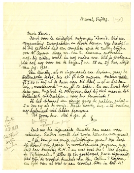 Van Munthe, als er ingenaaide exx. bestaan, graag de Hollandsche tekst, dus ad. fl. 6.50 ongeveer. Anders: niets. fl 7.50 is mij al te duur voor dit boek - al is het dan een ‘meesterwerk’ - en fl. 10. zéker. En een Zweed doet beter geen Engelsch te schrijven, laat hij zich maar in het Hollandsch uitdrukken - voor òns tenminste!