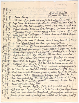 Ik schreef je gisteren om je te vragen den 30en in Den Haag te komen. Ik ben er wschl. in een hotel; als je er ook overnachtte, zouden we den avond nog ergens samen kunnen doorbrengen. Je zou dan den volgenden morgen vroeg terug kunnen gaan. Of is dit alles niet te realiseeren? Kom dan met Pinksteren in Gistoux, met Rien.