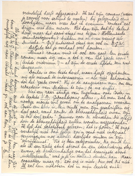 Die meneer Dekker (die het bericht wel eens had kunnen tegenspreken als het niet van hem kwam) heeft via een meneer Goedhart,1740 journalist alhier, geprobeerd om met Greshoff in relatie te komen, wat Gr. vriendelijk heeft afgepoeierd. Ik zal zijn romans (waar je zooveel voor schijnt te voelen) bij gelegenheid eens doorkijken, maar vrees dat ik evenmin ‘contact’ zal krijgen met dien meneer. Het kan zijn dat hij talent heeft, maar het soort staat me tegen: Hollandsche sous-Dostojevsky's trekken me al even weinig als Duitsche. - Gr.'s antwoord staat nu ook in D.G.W.1741