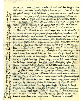 Naarmate ik mij armer voel tegenover mijn ‘taak’, zullen we maar even zeggen, van prozaschrijver, verdraai ik het om, bijwijze van troost, te coquetteeren met de poëzie. Ik heb dus niet alleen in tijden geen verhaal, maar ook geen vers geschreven. Wanneer ik u deze ‘armoede’ verraad, gelooft u dan niet dat het er een is, die ook maar eenigszins - in den goeden zin dan - afgunstig zou kunnen zijn op de productie van bv. Helman.1772 Integendeel, juist mijn sympathie voor hem maakt dat ik hem een beetje begin te zien als afschrikwekkend voorbeeld. Hij verwatert, al produceerende, als het zoo voortgaat; nog geen enkele maal heeft hij de rijke aandrift van Z.Z. West teruggevonden; en Overwintering na Serenitas is bedroevend! Enfin, hij is nu misschien wat je noemt: een werkzaam auteur...