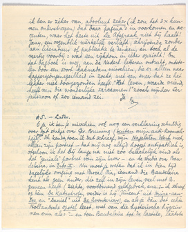 P.S. - Het zou onjuist zijn te zeggen dat er een ‘verkoeling’ is geweest, of is, tusschen Jany en mij. Er is een andere instelling van mij tot hem; meer weet ik er eig. niet van. Ik zal zien wat deze logeerpartij oplevert. Ik waardeer hem, als jij, buitengewoon, om wat jij ‘ruimte’ noemt (een zeer goed woord!)