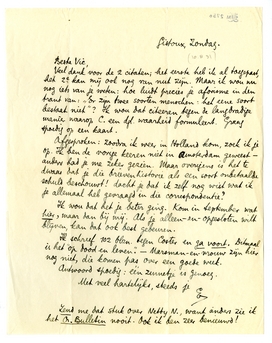 Afgesproken: zoodra ik weer in Holland kom, zoek ik je op. Ik ben de vorige keeren niet in Amsterdam geweest - anders had je me zeker gezien. Maar overigens is het te dwaas dat je die brievenhistorie als een soort onbetaalde schuld beschouwt! dacht je dat ik zelf nog wist wat ik je allemaal heb gevraagd in die correspondentie?1943