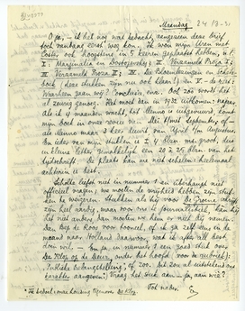 Nu iets anders. Het zou kunnen zijn dat Zijlstra van enkele der medewerkers-redacteuren de schrijverij voor dit tijdschrift zou willen monopoliseeren (bv. Menno, Slau, ik?). In dat geval moet je iets voor ons opmaken waardoor wij meer krijgen dan fl. 3.- per blz., zoo mogelijk fl. 6.- Maar liefst niet monopoliseeren! Wat vind jij?