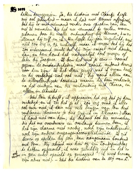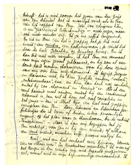 O ja, laat je alsjeblieft niet beïnvloeden door de gossip van Bouws betreffende de verhouding Slau-Darja, of welke andere dan ook. Bouws is een beste kerel, maar zijn psychologisch inzicht evenaart nul. Kan men anders zoo opgaan in een Hertha? Tot je verdere informatie diene, dat hij nu eenige strubbelingen met haar heeft, op het gebied van de danskunst. Zij danst helaas niet - of niet precies - op de manier, zooals Bouws die graag ziet. Je zult zien: àls het huwelijk niet doorgaat, is het door een dans-misstap van die dame, die als vrouw toch reeds een zoo vaste voet in huis had.