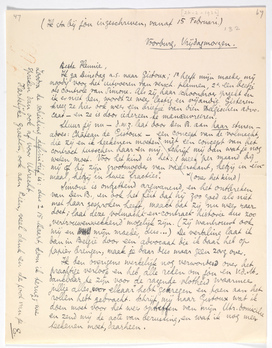 Ik ben overigens werkelijk nog verwonderd over het prachtige verloop en heb alle reden om jou en v.d.M. dankbaar te zijn voor de razende vlotheid waarmee jullie alles ‘voor elkaar’ hebt gekregen en toen aan het rollen hebt gebracht. Schrijf mij naar Gistoux wat ik doen moet voor het weer opheffen van mijn Utr. domicilie en zend mij de acte van berusting, en wat ik nog meer teekenen moet, daarheen.