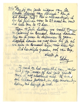 Tegen 10 Juli hebben we wschl. Forum-vergadering in Brussel, daarna dachten Bep en ik naar de Ardennen te gaan. Mogelijk komen we nog eens bij je, als we weer in Brussel zijn, vóór dien tijd.