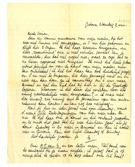 Kom jij dus in ieder geval niet vóór Maandag, want S. neemt Gille Zaterdagmorgen van hier weer naar Br. mee. Ik heb haar over je komst in dit verband gesproken en ze vindt het goed dat hij weer hierheen gaat als jij komt. Zaterdag is zij weer in Brussel en ben ik wschl. weer in Gistoux. Kom dus liefst Maandag of Dinsdag.