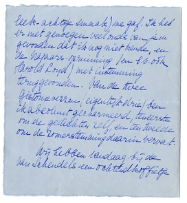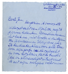BJ. - Wat zal ik aan de regelen mijner egade toevoegen dan dat ik behouden bij haar teruggekeerd ben? Het boekje zag er ook op gewoner papier (on-Japansch) keurig uit; ik schrijf er je nader over. Vrijdag ga ik met Arthur lunchen bij de Van Loons, Voorbeitels en andere Poloniussen.2424 Van Pannekoek vandaag een brief; ik heb nu zelf gesolliciteerd bij Schild. Van Kampen wil Coster exploiteeren; leuk dat hij daar blijkbaar niet te ‘fatsoenlijk’ voor is.