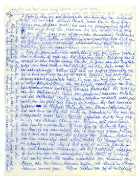 's Middags naar de Nationale gegaan, alwaar Bep een brief voor Het Vaderland heeft geschreven! Misschien nog veel te goed, ofschoon zij het gevoel had dat het kinderachtig was als een schoolopstel. Kortom, zij wil in ieder geval hebben geprobeerd; ik heb dus een begeleidend briefje aan Pannekoek geschreven, en de boel werd per avion verstuurd. Het zal wel niks worden, maar het geweten is hierna misschien stil. Als zij het wèl krijgt, tegen iedere verwachting in, ben ik nog niet gelukkig, want dan komt het erop neer dat ik tenslotte tòch mee moet doen!