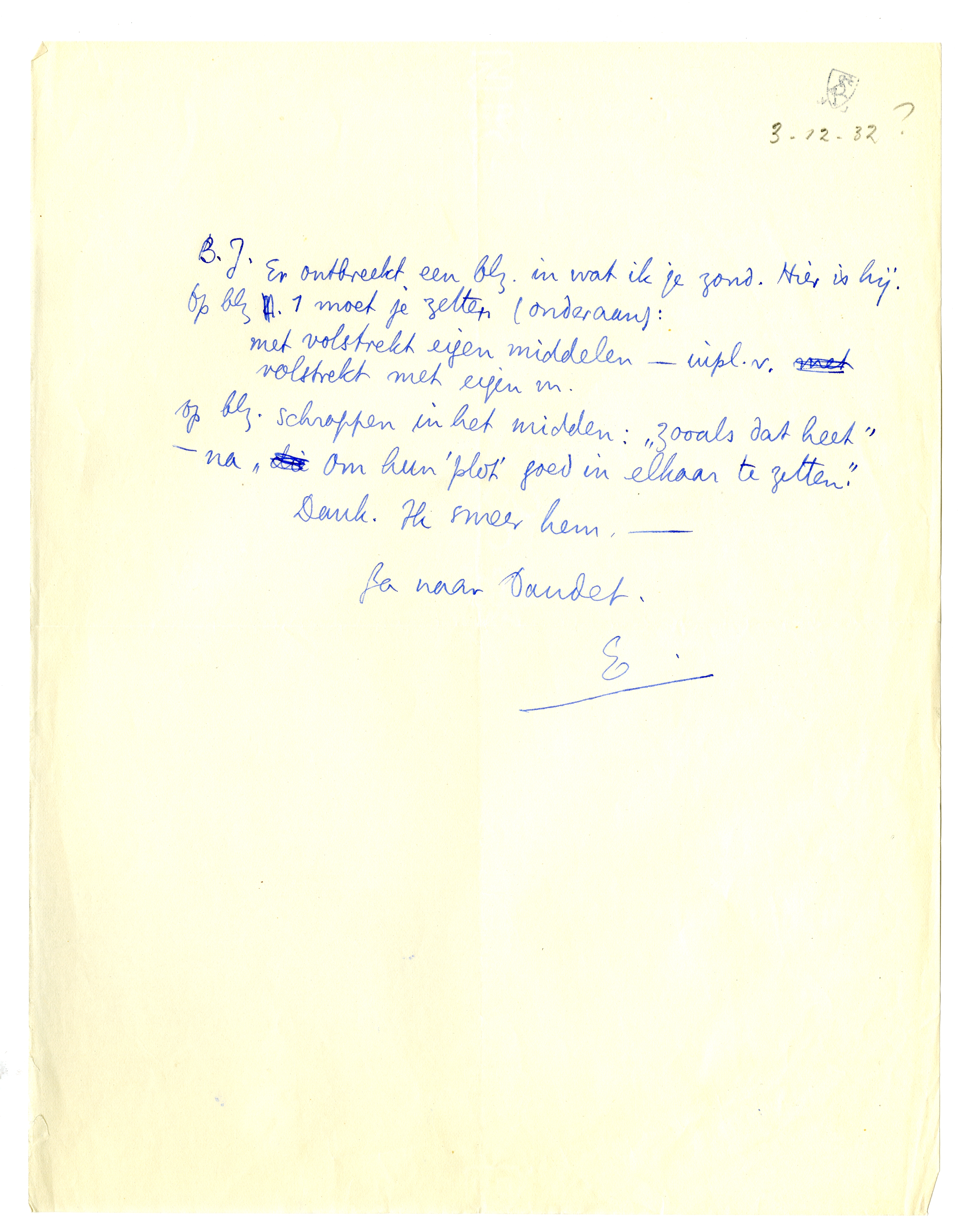 met volstrekt eigen middelen - inpl.v. volstrekt met eigen m. Op blz. schrappen in het midden: ‘zooals dat heet’ - na ‘om hun “plot” goed in elkaar te zetten’.