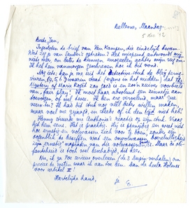 Ingesloten de brief van Van Kampen, die eindelijk kwam. Wat zeg je van Sander's optreden? Het mispunt antwoordt mij niets meer, om beter te kunnen smoezelen achter mijn rug om. Ik heb hem vanmorgen geschreven hoe ik dit vond.
