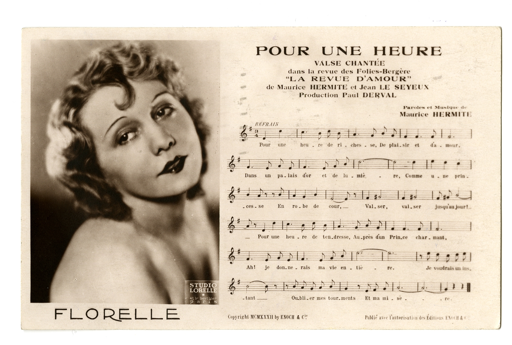 2466Prentbriefkaart: als 1404, met een stukje muziek en tekst van één van Florelle's liedjes.