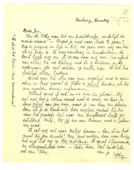 Van de Veths2500 was het een pràchtbriefje, werkelijk de moeite waard!* - Vergeet je niet naar Zoete te gaan? Bep is grieperig en ligt in bed; we gaan weer weg van hier als zij beter is. Ik was vandaag in Amsterdam; de bank heeft nog een fl. 20.000 voor mij over (na aftrek van alles), die na deeling met de 4 kinderen en de notarissen etc. wel schoon op zullen zijn. Ik heb dus feitelijk alleen Gistoux.
