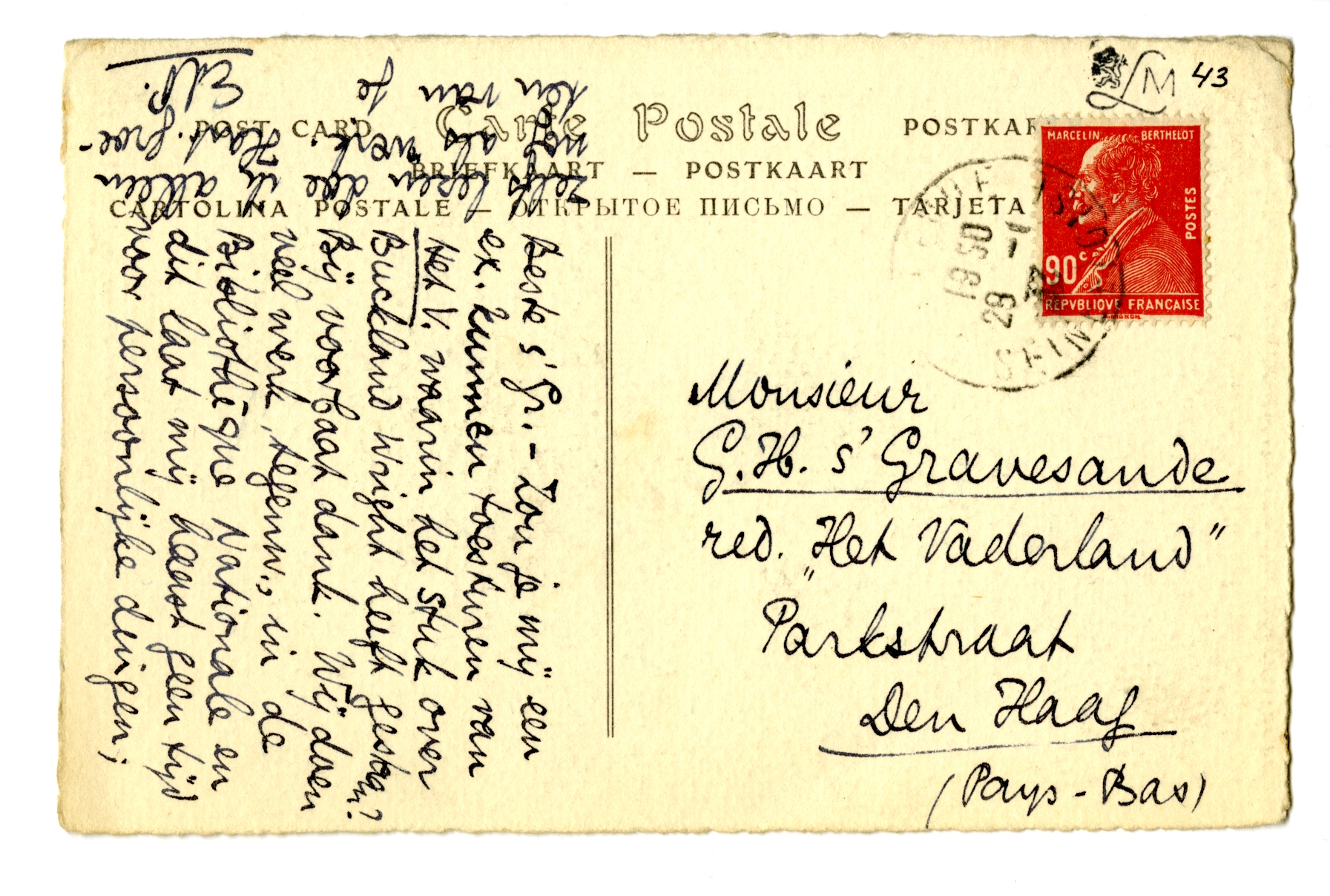 waarin het stuk over Buckland Wright heeft gestaan? bij voorbaat dank. Wij doen veel werk tegenw., in de Bibliothèque Nationale en dit laat mij haast geen tijd voor persoonlijke dingen; zelfs lezen doe ik alleen nog als werk. Hart. groeten van jeEdP.