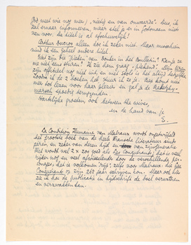 Je brief aan De Kring2606 is best, al heb je het toch wel erg lang gemaakt voor dat zoodje bij elkaar. Ik heb er mij erg mee geamuseerd, en zie de lui van de directie er al over delibereeren. Maar iets Don Quichotterigs zit er wel in - dat maakt het wschl. juist zoo sympathiek.