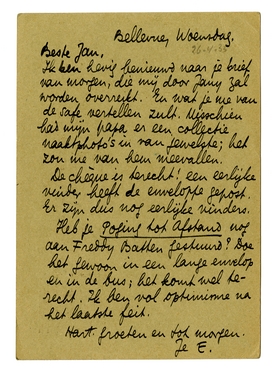 Ik ben hevig benieuwd naar je brief van morgen, die mij door Jany zal worden overreikt. En wat je me van de safe vertellen zult. Misschien had mijn papa er een collectie naaktphoto's in van jewelste; het zou me van hem meevallen.