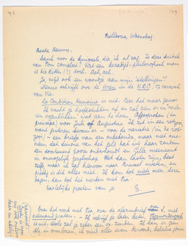 Over het werk met Pia, over de alarmbrief over S. met niemand praten. - Ik schrijf je later beter. Tegenonderzoek is uit; Stols zal je zeker een ex. zenden. Ik kan er geen blz. in overlezen, ik vind àlles even beroerd, behalve jouw nawoord. Coster is voor mij ook onleesbaar en akelig.