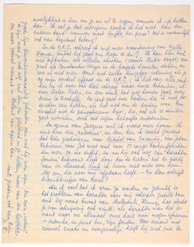 P.S. Als ik je hierna weer schrijf, gebeurt het wschl. weer op briefkaart. Wijt dat dan ook alleen aan mijn tegenwoordige omstandigheden. Ik heb het erg moeilijk, heusch, - vooral ook om te wennen.