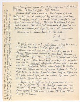 Als je in Holland terug bent, wil je dan werk maken om ontheffing te vragen van mijn betalingen aan Simone. Ik ‘verdiende’ toen fl. 250 in de maand; nu verdien ik met moeite 80 à 90 fl., waarvan ± fl. 40. naar Gille gaan. Ik kan dus niets meer betalen.