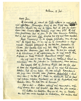 Heeft Timmers je op de hoogte gehouden van de erfenis? De zegels zijn er nu af, en de inventaris is opgemaakt. Meubels getaxeerd op 44.000 frs., juweelen op 53.000. (Dit laatste lijkt mij zéér laag!) Enfin, soit ± 100.000 frs. Daarvan gaat méér dan 60.000 frs. schuld, + de huishuur, + de notarissen, en de rest wordt dan ongeveer in twee verdeeld. Resultaat wsch. nul.