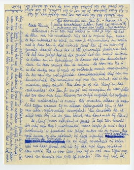 Blijft nog dat punt over je ‘karakter’ in de Cahiers.2888 De waarheid is dat het voor mij zoo dood was geworden van beteekenis, dat ik eroverheen gelezen heb! Ik heb het gelezen als een trekje dat tot de vijandige sfeer van vroeger behoorde; ik schrapte de vergelijking met Mussolini-Kokadorus (al voor die te gebruiken, Kokadorus bedoel ik, in het slot van mijn Coster), omdat het mij bij herlezing opviel als noodeloos hatelijk èn idioot; maar dat andere raakte mij niet meer, omdat het zuiver was in de verhouding Marsman-du Perron die ik dààr geven wilde. Kan je je dit voorstellen? Had ik ook maar even gedacht dat het voor jou nog ‘van kracht’ was, ik had het direct geschrapt. Jij let nog op het publiek, ik heb altijd onderbewust het gevoel dat het publiek tòch niet op wat ik schrijf let. Voilà.