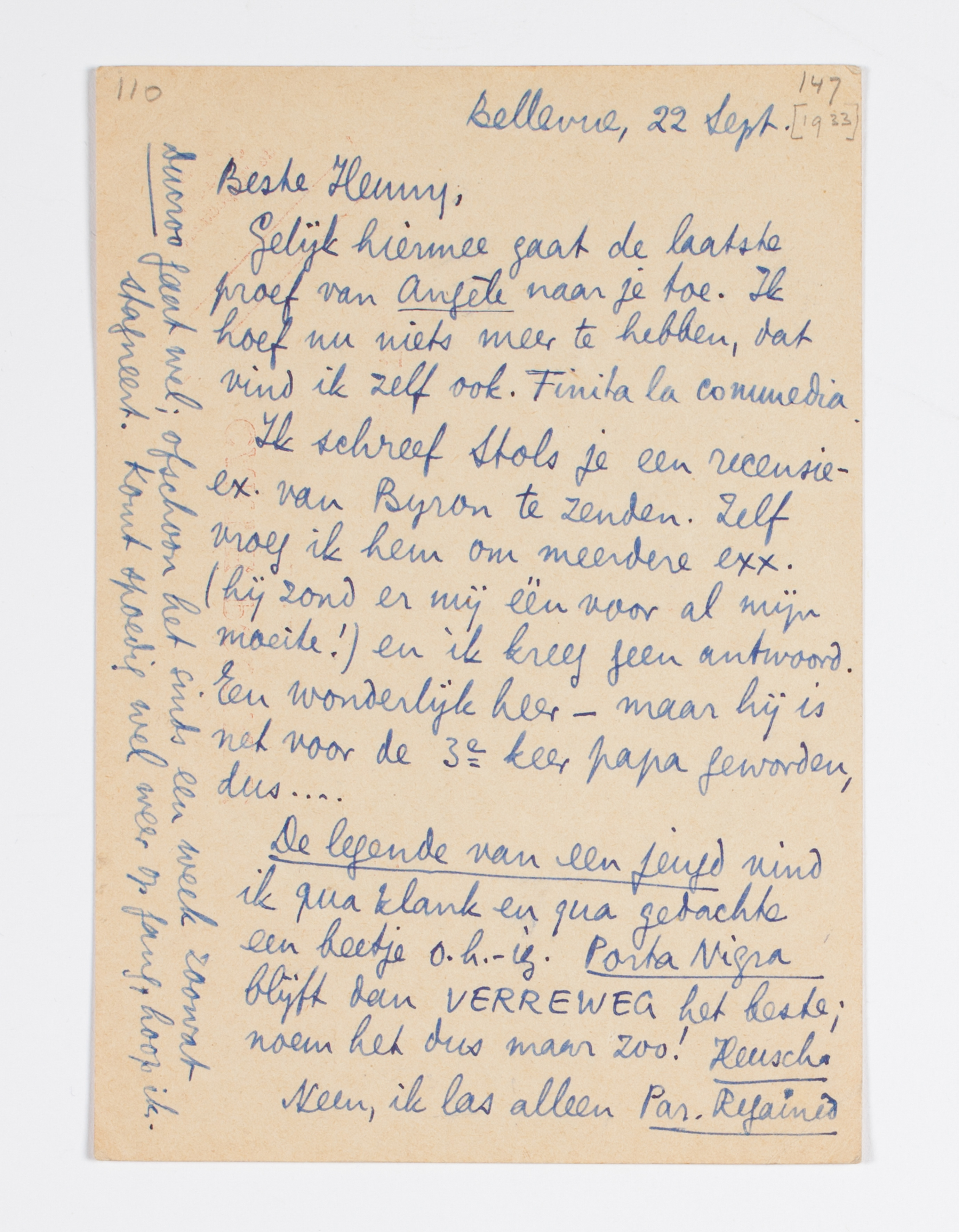 Gelijk hiermee gaat de laatste proef van Angèle naar je toe. Ik hoef nu niets meer te hebben, dat vind ik zèlf ook. Finita la commedia.