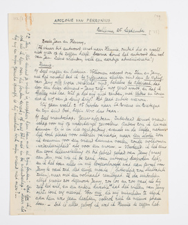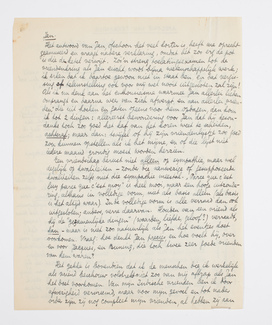 b/Deel vriendschap. Gauw afgedaan. Inderdaad berust vriendschap voor mij op wederkeerige gevoelens. Anders zouik het niet kunnen. Er is in die verhouding, evenals in de liefde, natuurlijk toch plaats voor allerlei variaties, maar ten slotte zou ik evenmin voor een vriend kunnen voelen zonder volkomen ‘wederkeerigheid’ als voor een vrouw. - Voorbeeld: ik heb eens een soort teleurstelling op dit gebied gehad van Jany (vraag aan Jan, met wie ik de zaak toen uit-voerig besproken heb), en ik heb toen alles in mij losgeschroefd wat aan gevoel voor Jany te vast zat. Met eenige moeite (bitterheid, zou Multatuli zetten), maar met een volmaakt resultaat. Ik sta sindsdien altijd precies zoo tegenover Jany, zoo los en zoo vast, als hij zelf het wil, en een andere kwestie is dat het willen van Jany après tout erg meeviel. Voor mij, die misschien te sterk aan hem was gaan hechten, voltrok zich de nieuwe phase toen. - Dit is alles, geloof ik, wat ik Hennie te zeggen heb.